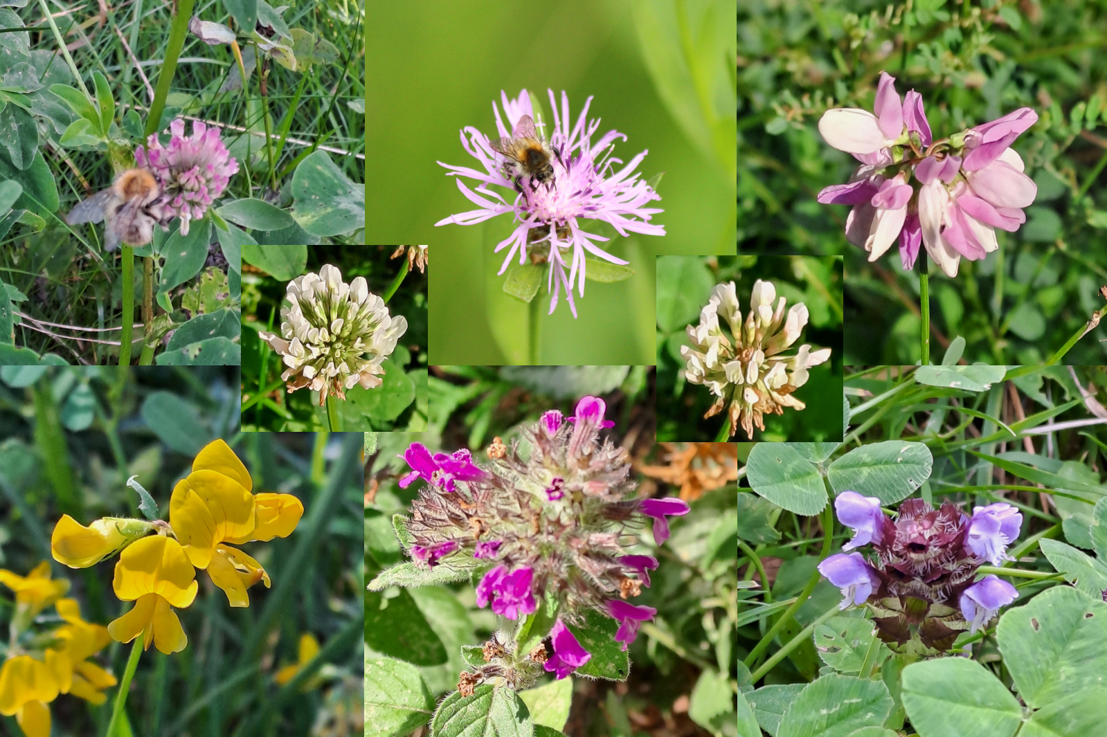 - Jetel luční – základní potrava pro většinu druhů čmeláků a řadu motýlů, poskytuje nektar i velmi výživný pyl a tím že jeho porosty kvetou kontinuálně od května do podzimu, ho čmeláci dokážou průběžně využívat.